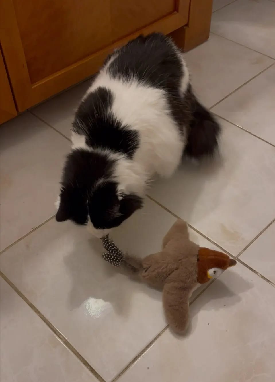 Hergestellt aus natürlicher Baumwolle und weichem Plüsch, ist FlappyFriend sicher, langlebig und robust genug, um den Bissen und Kratzern deiner Katze standzuhalten. Garantiert ihr neuer Lieblingsbegleiter!